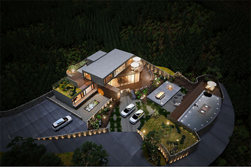 尊重自然,融于自然,取于自然的構(gòu)建。山林與建筑,建筑與山泉融為一體。