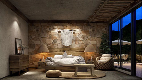 建筑臨山而居,近水而棲。在一切以效率為先的時(shí)代,我想讓時(shí)間慢下來,從傳統(tǒng)和自然中尋找某種理想的人性存在。我們用當(dāng)?shù)氐奈幕瘉碜鲈O(shè)計(jì)鋪墊,將一些看似自然的產(chǎn)物,用新的方式或材質(zhì)來表達(dá)。